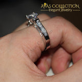 This beautiful ring is 14k white gold filled and complimented with top grade Simulated Diamonds. This ring shines with beauty and adds a luxurious look.Top quality stones display amazing enriched clarity just like real diamond!