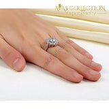 This beautiful ring is made out of the highest quality solid silver content that's higher than 925 with top grade simulated Diamonds. This ring shines with beauty and adds a luxurious look.
