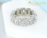 This beautiful Women's Band is 18k white gold filled with top grade Simulated Diamonds. This ring shines with beauty and adds a luxurious look.Top quality stones display amazing enriched clarity just like real diamond!.Please make sure to order correct ring size.