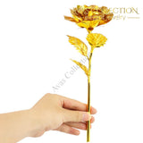 Gold plated rose in full bloom.Petal and leaf are made of plastic with thin 24K gold foil plated, the flower rod is made of Polyethylene with gold plated.Diameter: approx. 8.5cm / 3.3"; Height: approx. 25.5cm / 10"Great romantic Valentine gift, birthday gift and wedding gift for lover and friends.Come with a gorgeous packing box and Love Stand.