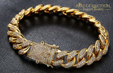 High Quality 14mm Iced Out Cuban Link Bracelet is Complimented with Top grade Simulated Diamonds.Available in Silver or Gold finish and 7 or 8 inches in length.