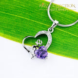 Purple Crystal Heart Pendant Necklace 925 Sterling Silver